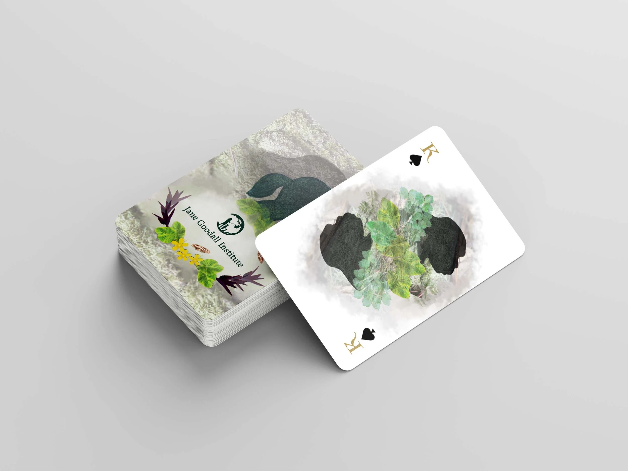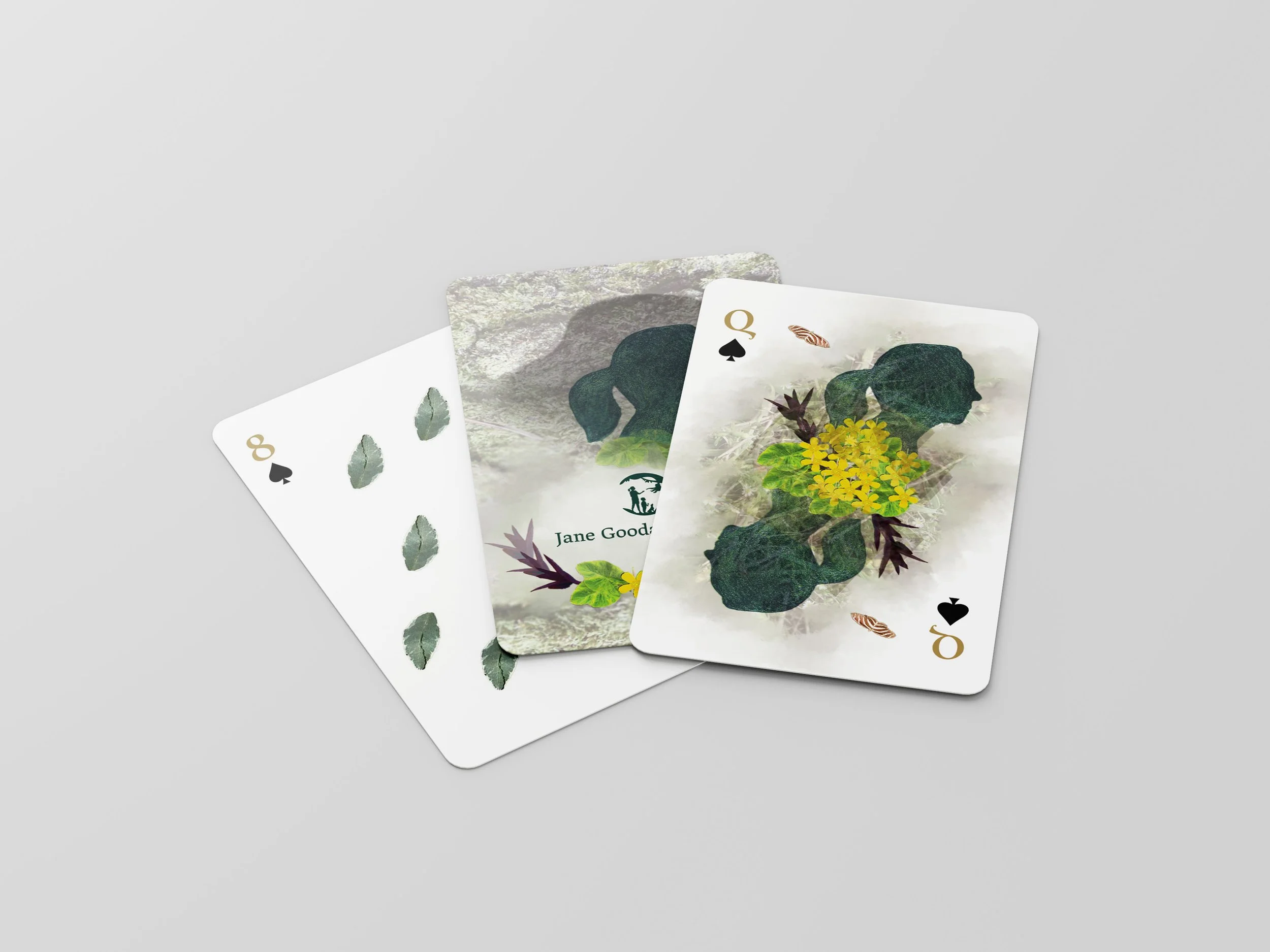 These playing cards were developed to draw attention to the Jane Goodall Institute, which helps raise environmental awareness and funding for chimpanzee research.